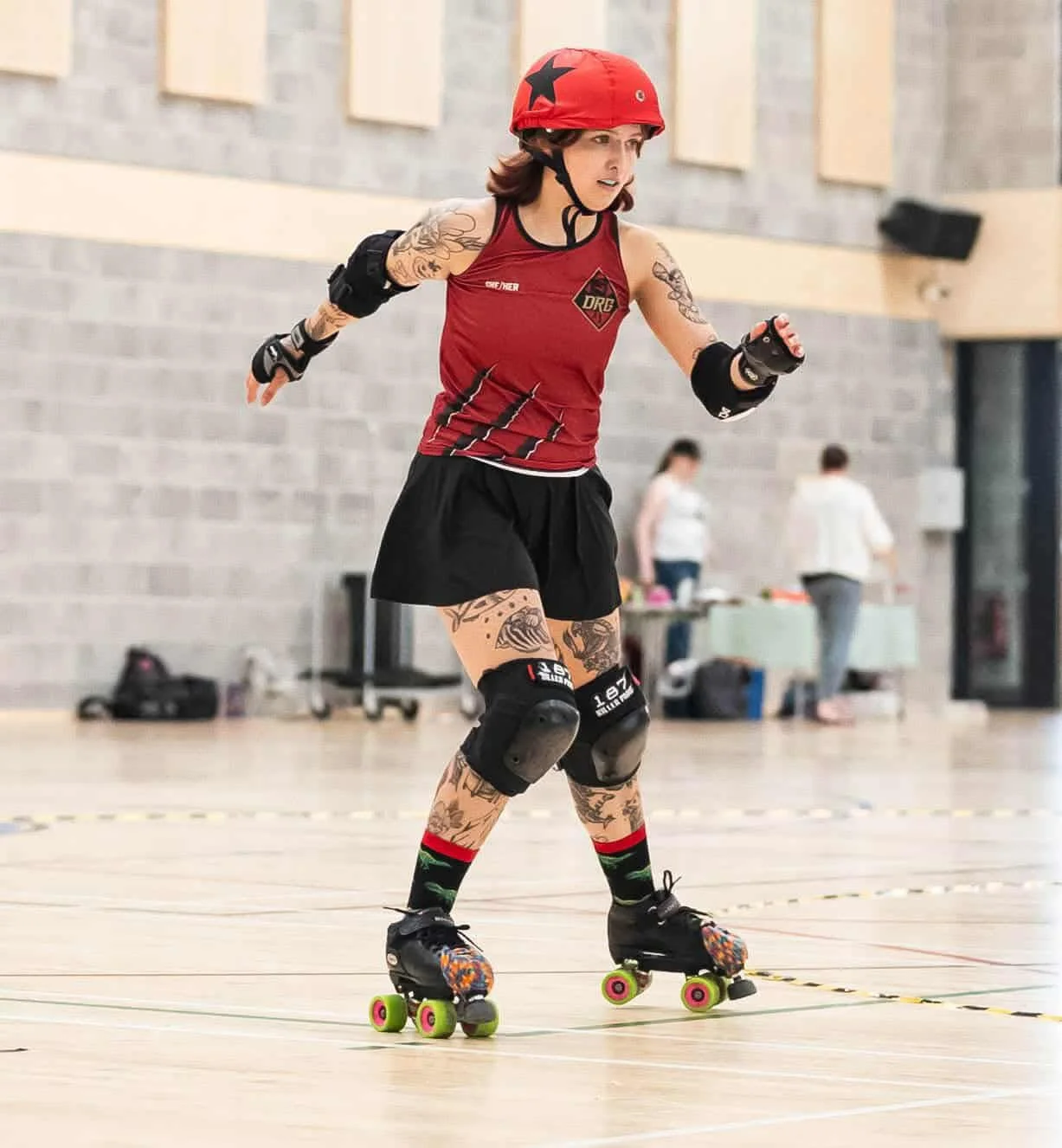 Founded in 2011, DRG Roller Derby is Dorset’s first and only team dedicated to female, trans, and non-binary skaters. We are a grassroots, player-owned and run team that prides itself on inclusivity, passion, and fierce competition. Skating under the Women’s Flat Track Derby Association (WFTDA) ruleset, we compete in local scrimmages and nationwide events, including the highly-anticipated 5 Nations competition.